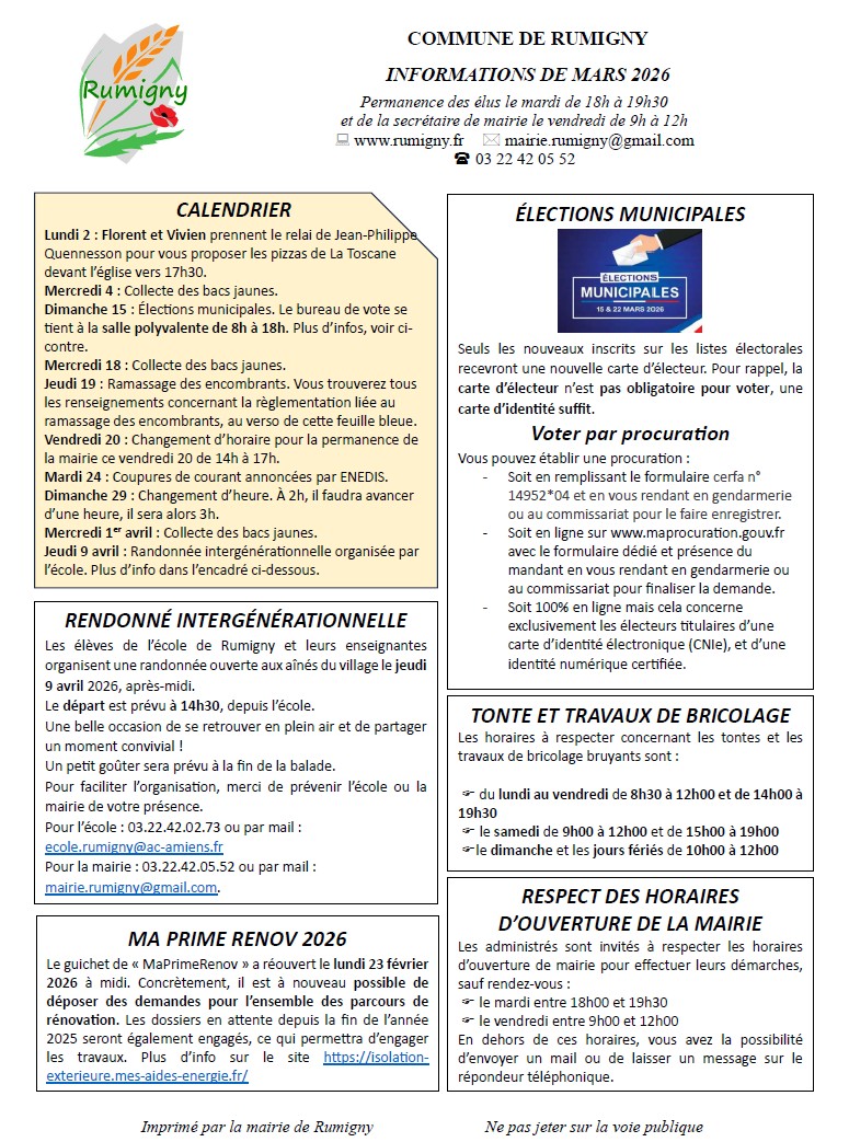 Chemins Ruraux : Un recensement des chemins ruraux a été réalisé en ce début d’année. Retrouvez toutes les informations à ce sujet en cliquant sur ce lien.