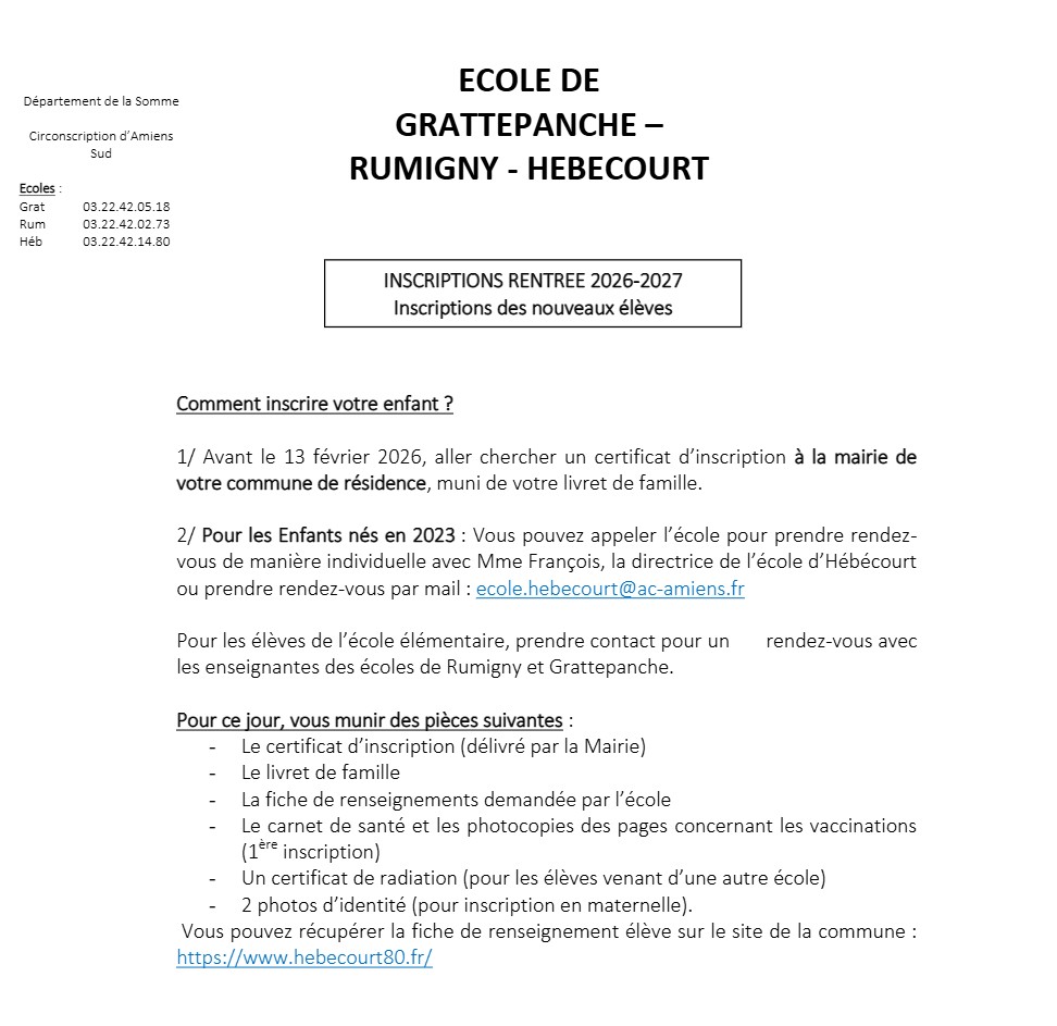 Ecole d’Hébécourt : 03 22 42 14 80